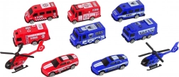 Acest set universal aduce o echipă completă de salvare – 5 vehicule de poliție și 5 de pompieri, inclusiv elicoptere. Dimensiunile compacte ale mașinuțelor facilitează prinderea și manevrarea și susțin jocul realist acasă sau în deplasare.
