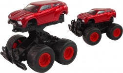 Mașina este fabricată din metal cu adaos de plastic. Are anvelope mari din plastic și suspensie înaltă. Prin apăsarea unui buton, mașina pornește înainte; imediat ce lovește un obstacol, sare și se ridică automat. Distracție incredibilă pentru cei mici!