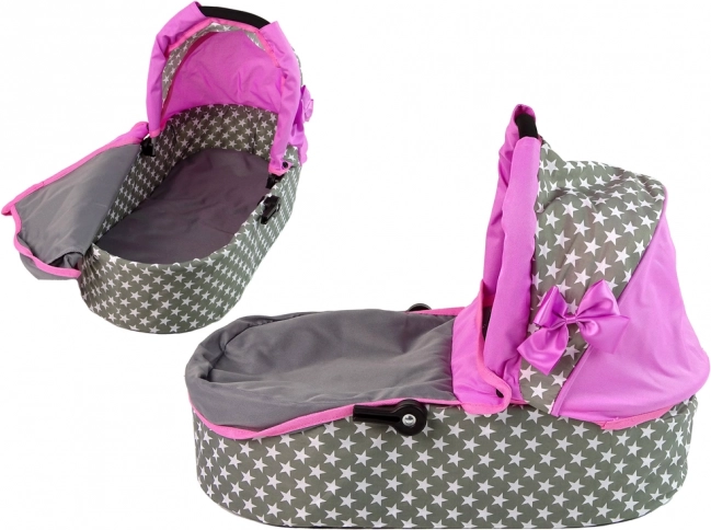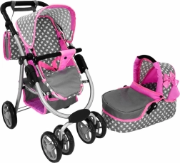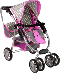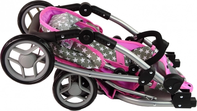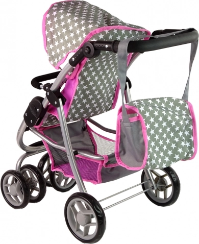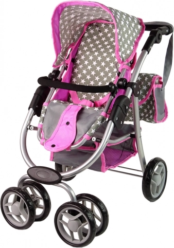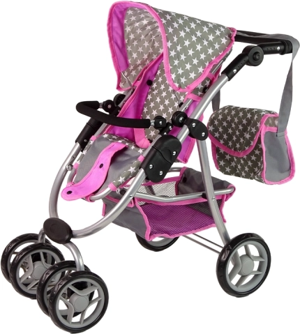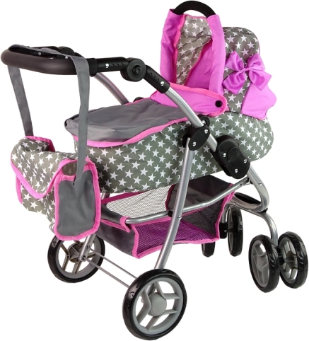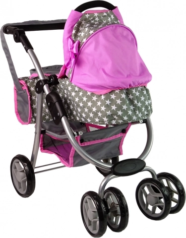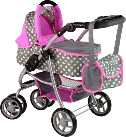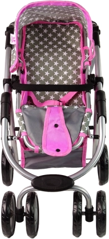 Căruciorul combină culoarea roz și gri cu un model stelar, aducând un aspect realist jocului de-a mămicile.