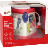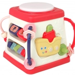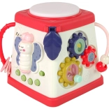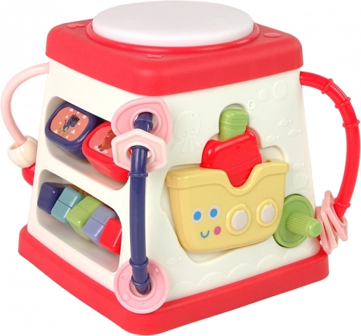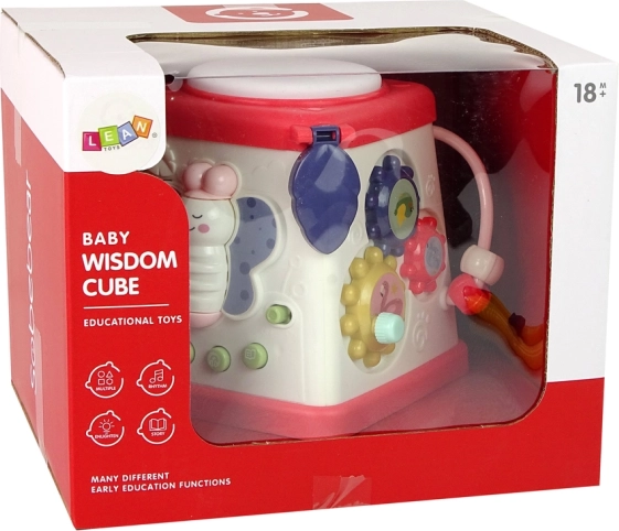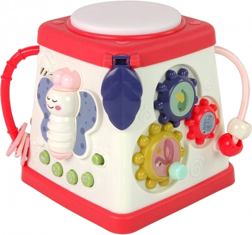 Acest cub interactiv colorat îmbină mai multe activități într-un singur ansamblu inteligent. Fiecare față aduce o altă abilitate: de la întărirea motricității fine, la dezvoltarea auzului și văzului, până la primele noțiuni de vocabular în limba engleză. Datorită culorilor vii și sunetelor plăcute, copiii se îndrăgostesc imediat de joc.