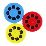 Trei discuri colorate (dinozauri, animăluțe, lumea subacvatică) oferă copiilor un spectacol variat și învățare prin joacă.