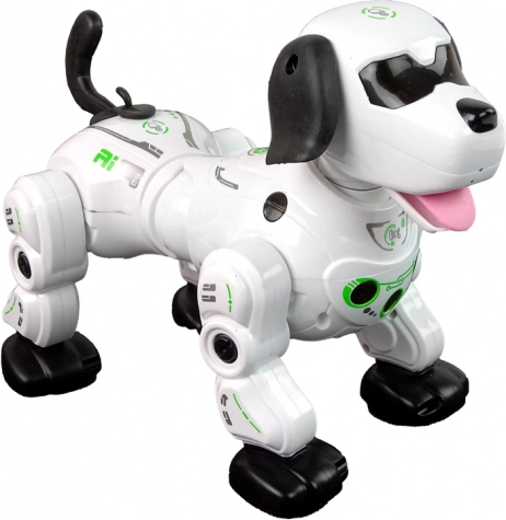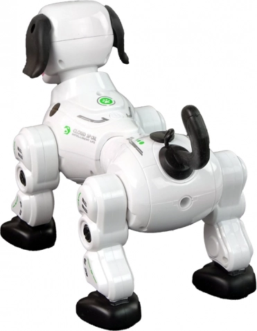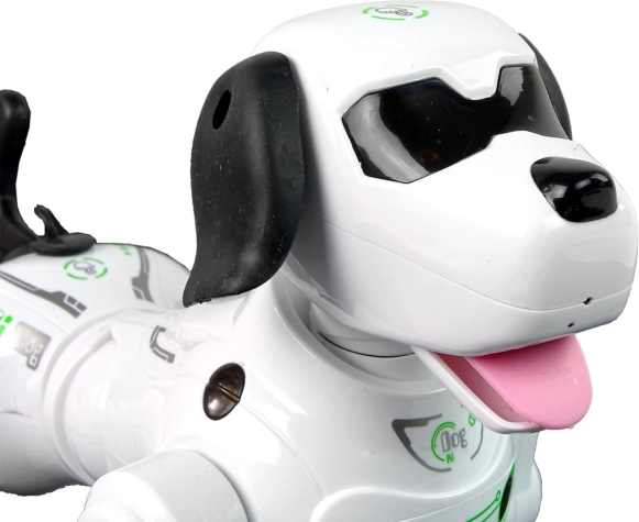 - Funcții interactive: lătrat, mișcare, răspuns la comenzi, „somn”, ochi luminoși.