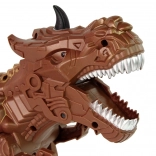Acest dinozaur maro cu telecomandă transformă camera într-o lume preistorică. Se deplasează înainte, rage amenințător, are ochi luminoși, iar proiectorul inferior proiectează o scenă cu un dinozaur real în mediul său natural. Doar câteva picături de apă din pipeta inclusă și din gură iese abur rece – sigur și impresionant.