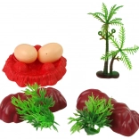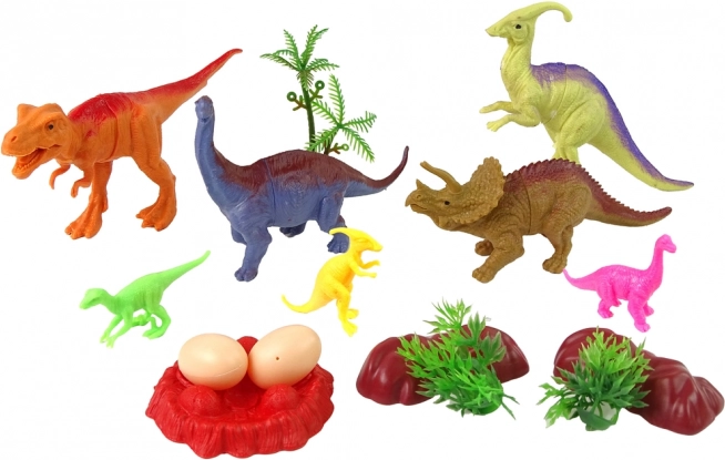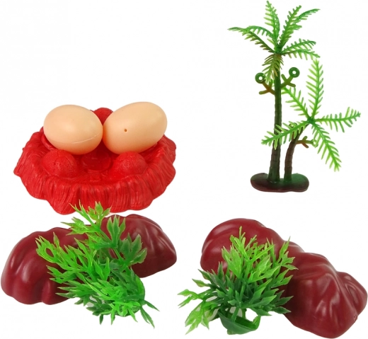 De asemenea, veți găsi trei dinozauri mici, care adaugă dinamism și varietate jocului. Accesorii precum două pietre, doi arbuști și două ouă oferă un fundal autentic pentru joc, iar baza inclusă conferă scenariului realism. Un copac completează setul și susține crearea poveștilor în mediul natural.