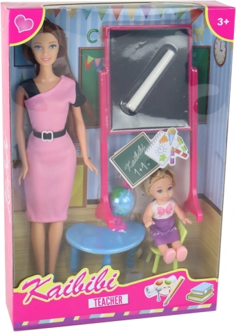 Imersați-vă în lumea educației cu acest minunat set școlar care aduce jocuri creative și scenarii legate de școală. În pachet găsiți o învățătoare cu părul lung și castaniu și o ținută roz elegantă, pregătită să predea. De asemenea, include un elev cu părul lung și blond, îmbrăcat într-o rochie alb-violet. Ambele păpuși pot fi stilizate și li se pot atribui diferite roluri.