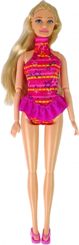 Păpușa este echipată cu păr lung și blond și un costum de baie roz superb care susține orice tip de joc.