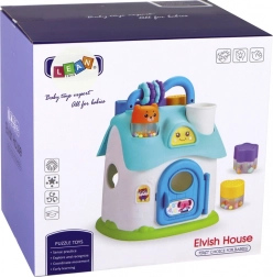 Căsuța are patru deschideri diferite pe acoperiș pentru sortarea după formă și culoare și uși colorate care se deschid. Pe acoperiș există o fereastră cu o față zâmbitoare care luminează și emite sunete, încurajând interacțiunea și captarea atenției copilului.