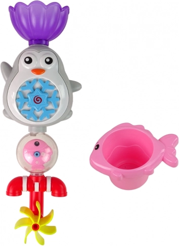 Aduceți bucurie pentru fiecare baie zilnică cu această jucărie pinguin. Tot ce aveți nevoie este să turnați puțină apă în floarea violet de deasupra și magia începe imediat!