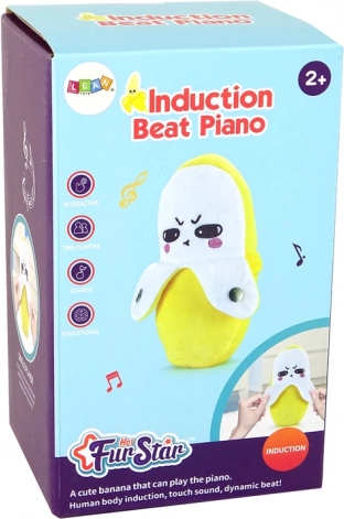 Banana interactivă din pluș adorabilă cu dimensiunea de 22 cm aduce copiilor melodii vesele și distracție la atingere. La apăsarea butonului argintiu începe să redea cântece vesele, iar butoanele frontale permit redarea notelor individuale. Moale, plăcută la îmbrățișat, în culoarea galbenă de bază și ideală ca cadou pentru copii de la 2 ani.