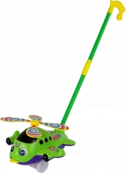 Avionul de împins verde este un minunat tovarăș pentru plimbările comune. Datorită acestei jucării, zâmbetul nu va dispărea niciodată de pe chipul copilului dumneavoastră.