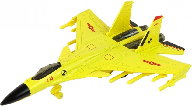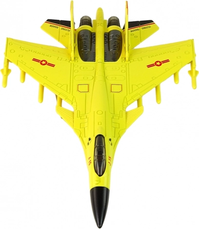 Design elegant galben: Avionul este realizat în culoarea galbenă autentică, amintind de un vânător real. Include roți de cauciuc pentru o deplasare lină pe diverse suprafețe.