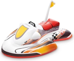 Corpul compact permite umflare și dezumflare rapide și transport facil. Designul cu motivul Wave Rider GP500 și micuțul steag îi va cuceri pe micii piloți și va inspira jocul imaginativ în piscină sau pe ape liniștite.