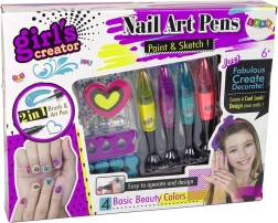 Creează-ți acasă propriul mini salon! Acest set pentru decorarea unghiilor pentru copii oferă tot ce are nevoie o mică stilistă: 4 markere colorate pentru decorare precisă, o pilă în formă de inimă și separatoare confortabile pentru degete. Sigur, cu formulă netoxică, este delicat cu unghiile copiilor și respectă standardul EN71.