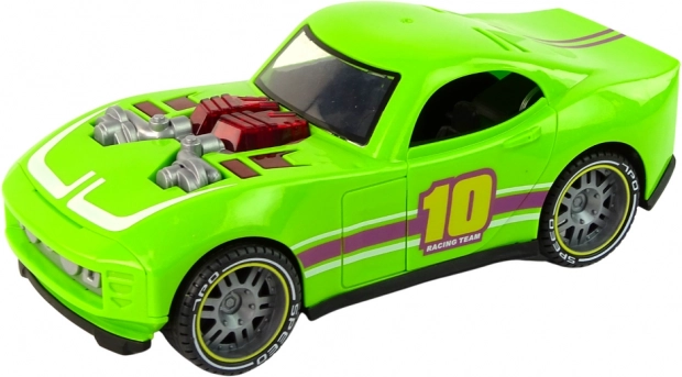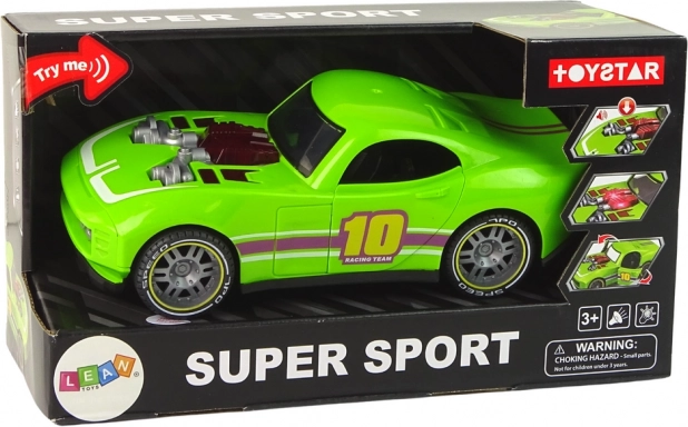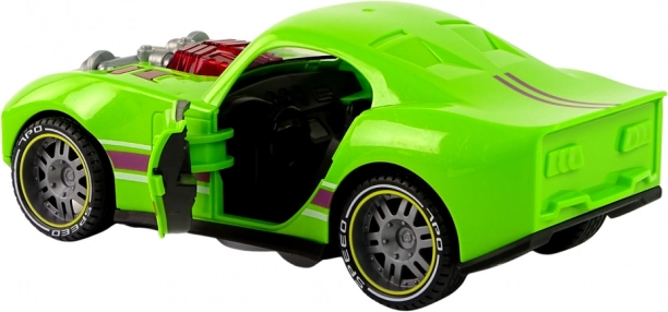 Mașina sport verde, la scara 1:14, îi va încânta pe micii piloți: oferă efecte luminoase și sonore, uși care se deschid și mecanism cu fricțiune (inerțial) pentru curse dinamice. Pentru copii de la 3 ani, alimentare 2× AAA (nu sunt incluse), certificări CE și EN71.