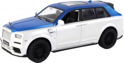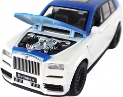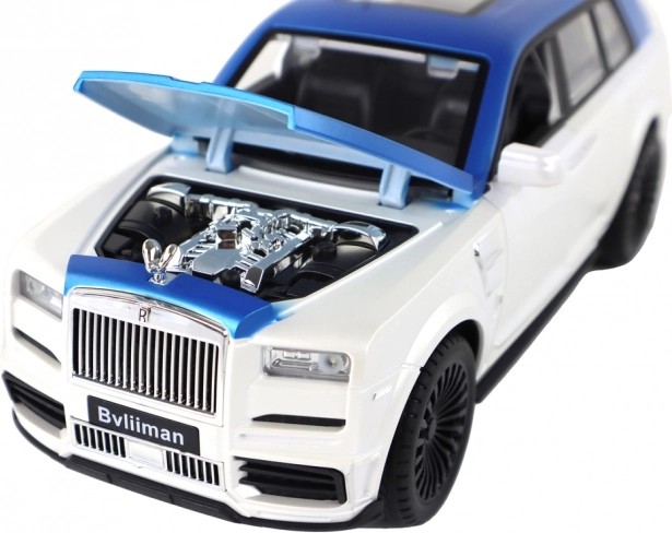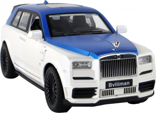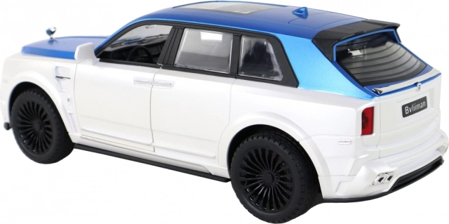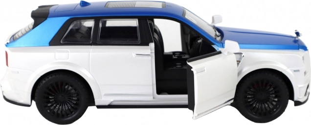 Caroseria alb-albastră cu detalii argintii și uși funcționale oferă modelului un aspect autentic ca al unui SUV real.