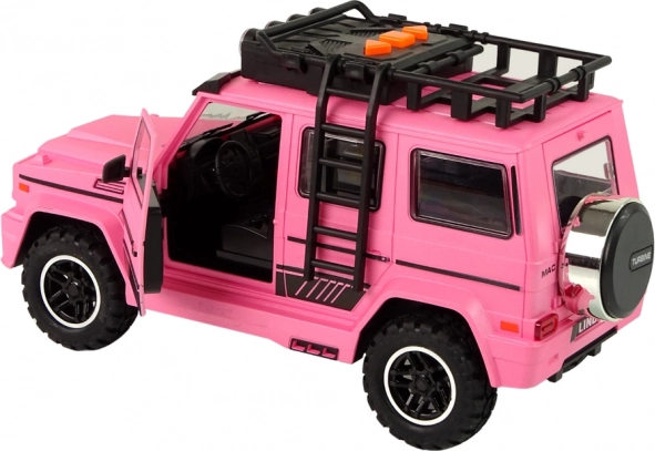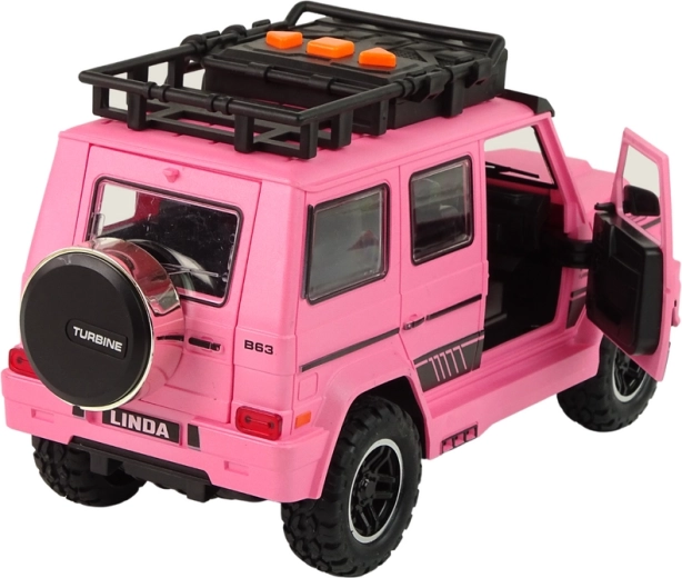 Mașina are un design drăguț, în culoare roz, care îi conferă un aspect prietenos și distractiv.