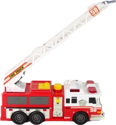 Descoperă o mașină de pompieri realistă pentru copii, cu lumini, sunete, platformă cu scară extensibilă și rotativă și efect de apă pentru acțiune și mai autentică. Construcție robustă din plastic, roți din cauciuc mari pentru rulare stabilă și compartimente de depozitare pentru echipamente ascunse, care stimulează imaginația și motricitatea fină. Cadoul ideal pentru micii eroi de la 3 ani.
