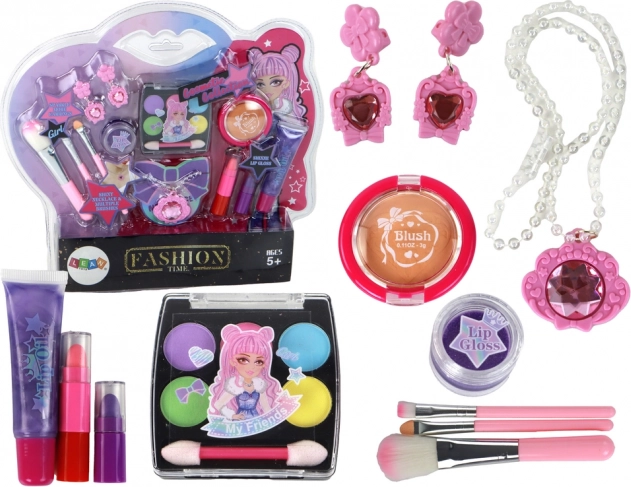 Pe lângă cosmetice, setul include și bijuterii stilate, care adaugă eleganță și un caracter unic fiecărei ținute. Colierul și cerceii în nuanțe de roz completează perfect orice creație și adaugă strălucire și farmec feminin.