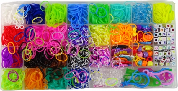 Descoperă setul captivant de benzi elastice pentru bijuterii cu **1500 de piese** variate în culori și modele, ideale pentru design creativ. Adaugă un plus de stil și personalitate creațiilor tale cu **24 de accesorii** incluse, cum ar fi: mărgele albe cu litere colorate, mărgele standard colorate și mărgele în formă de fructe fermecătoare. Setul include, de asemenea, brelocuri din cauciuc adorabile cu diverse forme, culori și teme, făcând ca brățările tale să fie și mai personale și stilate. Cu ajutorul **instrumentelor practice** incluse pentru creația de brățări, vei face procesul de design și realizare o adevărată plăcere. Creați-vă propriile brățări cu ușurință datorită diversității de elemente și instrumente disponibile în pachet.