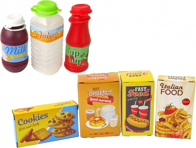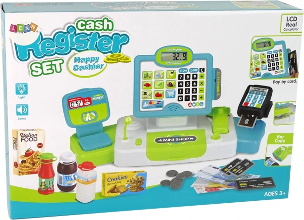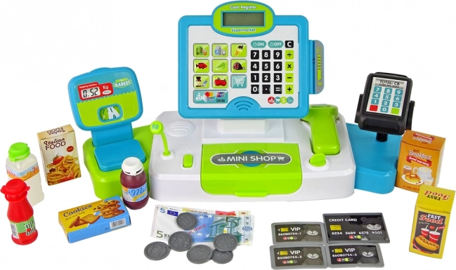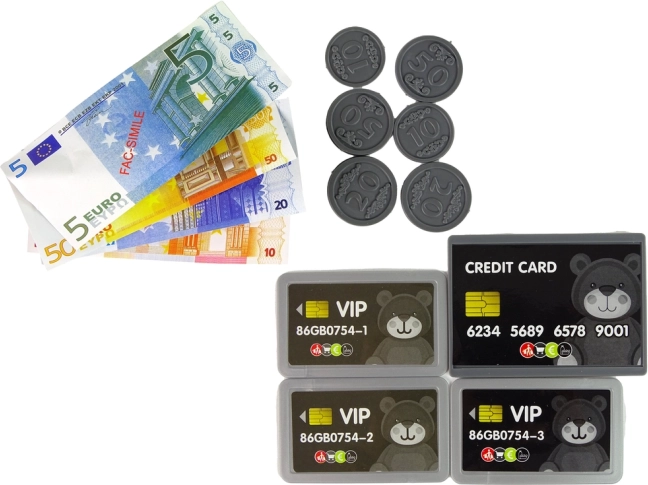 Setul include și bani, carduri și diverse produse, care permit copiilor să simuleze cumpărături și să-și dezvolte abilitățile matematice.
