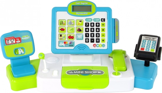 Conține diferite elemente interactive precum un cântar, terminal și scaner. Jucăria este concepută pentru a sprijini dezvoltarea abilităților manuale și a imaginației.
