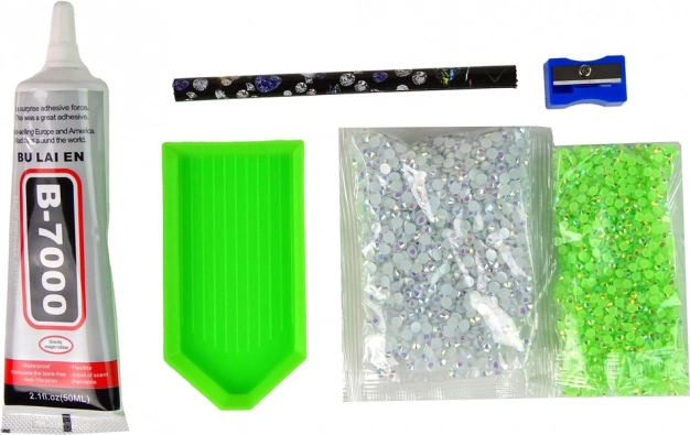 Setul conține toate instrumentele necesare și cristale pentru a crea propria operă de artă diamant.