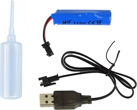 - telecomandă, baterie reîncărcabilă, cablu USB de încărcare, sticluță pentru apă