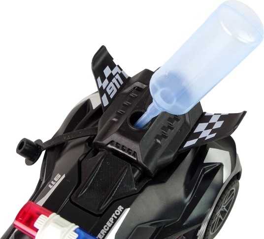 Este suficient să adaugi apă cu ajutorul sticluței incluse, iar mașina generează în timpul mersului aburi de apă spectaculoși, care amplifică senzația unei acțiuni polițienești reale.