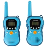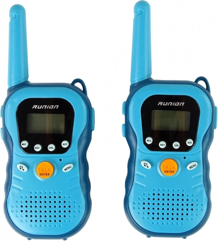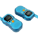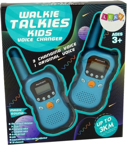 Stațiile walkie-talkie pentru copii, în culoare albastră, oferă comunicare interactivă până la o distanță de 3 km. Dispun de 16 canale, schimbarea tonului vocii (feminin, masculin, robot), operare ușoară cu butonul TALK și funcție de sonerie. Ideale pentru micii exploratori și pentru joacă în aer liber sau în casă.