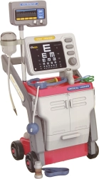Acest set medical atrăgător în alb‑roz îi va încânta pe toți micii pasionați de medicină. Include o stație mobilă, un stetoscop funcțional pe baterii (3×1,5 V, nu sunt incluse), seringă, foarfece și alte accesorii indispensabile. Autocolantele decorative oferă stației un aspect autentic.