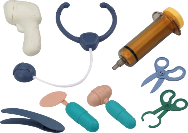 Setul conține tot ce este necesar pentru o „mică clinică”: seringă, foarfecă, stetoscop și alte accesorii. Este fabricat cu atenție la siguranță și respectă normele CE și EN71, fiind potrivit pentru copii de la 3 ani.