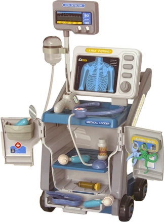 Acest set medical albastru le permite copiilor să intre în rolul unui medic adevărat. Stetoscopul funcțional cu sunete oferă autenticitate jocului, iar căruțul portabil păstrează toate instrumentele la un loc și facilitează deplasarea prin cameră. Datorită autocolantelor decorative, copiii își pot personaliza setul.