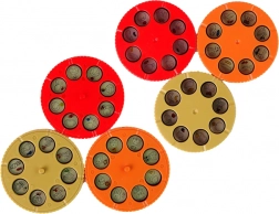 Șase discuri interschimbabile cu teme precum animale, fructe, legume sau transport pentru inspirație nelimitată.