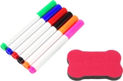 Include 6 carioci colorate și un burete pentru ștergere rapidă, astfel încât creațiile să fie curate și repetabile.