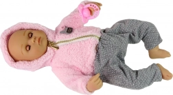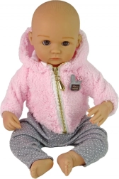 Descoperiți farmecul jocului de îngrijire cu o păpușă-bebeluș realistă, care impresionează prin expresia sa blândă și detalii. Ținuta este alcătuită dintr-un hanorac roz moale și pantaloni gri cu buline, ușor de combinat cu alte piese. Păpușa are membre articulate, astfel încât copiii o pot așeza, culca și crea diferite scene cu ușurință.