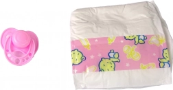 Pachetul conține suzetă și scutec, permițând copiilor să schimbe și să liniștească bebelușul ca niște mici îngrijitori adevărați.