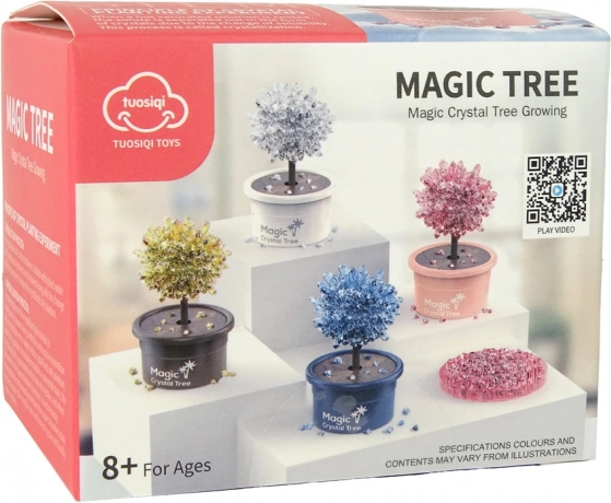 Pomul de cristale magic este alegerea ideală pentru copiii curioși de la 8 ani în sus și pentru adulții pasionați de experimentele realizate acasă. Pur și simplu amestecați pulberile cristaline conform instrucțiunilor, turnați cantitatea măsurată de apă și urmăriți cum cristalele cresc zi de zi. Primele rezultate apar foarte repede, iar creșterea completă poate dura de la câteva zile până la săptămâni, în funcție de condiții și proporții.