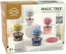Descoperiți cum iau naștere cristalele și se transformă treptat sub ochii voștri. Copacul magic de cristale este ideal pentru primele experimente acasă: este suficient să amestecați componentele incluse, să montați „copăcelul” și să urmăriți cum, pe parcursul zilelor până la săptămâni, se dezvoltă o structură cristalină unică într-o elegantă nuanță aurie.
