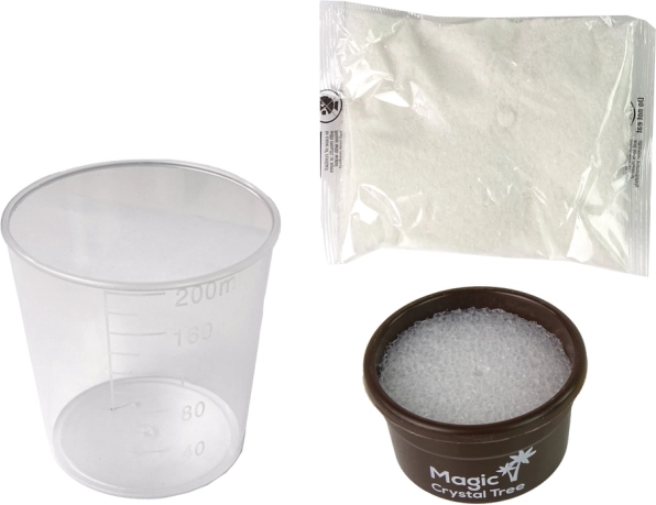 Paharul gradat, pulberea cristalină și baza copăcelului permit desfășurarea în siguranță și confort a întregului experiment acasă.