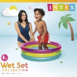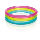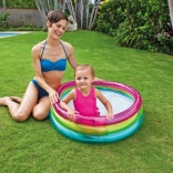 Piscina gonflabilă pentru copii INTEX Rainbow este un ajutor practic și plin de culoare pentru zilele de vară. Datorită celor trei inele transparente, este stabilă și confortabilă, iar dimensiunile compacte de 86 × 25 cm se potrivesc în majoritatea grădinilor, teraselor și balcoanelor. Capacitatea de 68 de litri la înălțimea recomandată a apei de 17 cm asigură o suprafață de apă sigură și puțin adâncă pentru copilași.