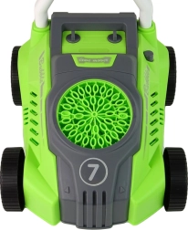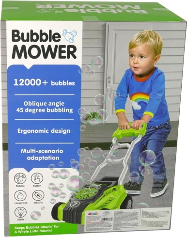 Această jucărie este alimentată de patru baterii de 1.5V AA (nu sunt incluse). Compartimentul pentru baterii este situat în partea din spate a mașinii de tuns iarba și se poate deschide în siguranță cu șurubelnița inclusă. De asemenea, în partea superioară a mașinii de tuns iarba este un rezervor special cu un recipient pentru lichidul de bule, ceea ce facilitează reumplerea setului.
