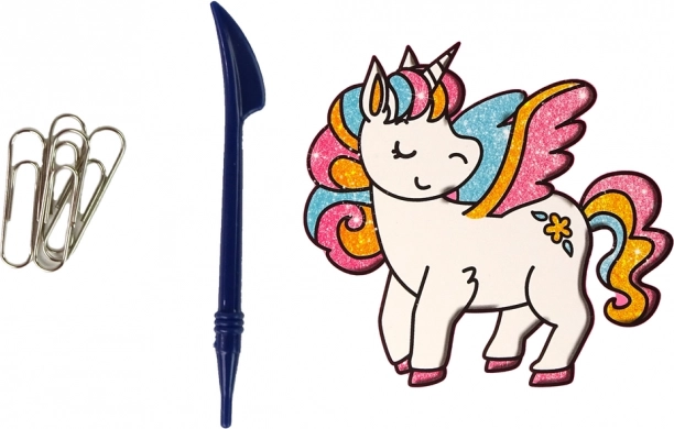 Această set conține autocolante cu unicorni magici, curcubee colorate și stele sclipitoare. Copilul dumneavoastră se va bucura de pictarea propriilor modele. Autocolantele au doar conturul, iar interiorul depinde de imaginația fiecărui copil. În set veți găsi 8 culori sclipitoare care aduc strălucire și farmec tărâmului magic.