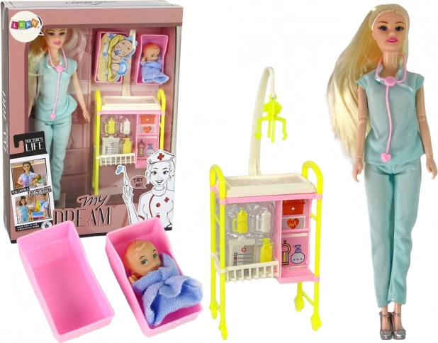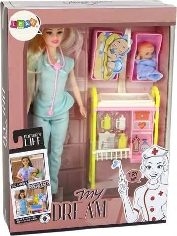 Pregătiți-vă pentru lumea fascinantă a medicinei cu această păpușă excepțională. Îmbrăcată într-o ținută medicală tipică și cu păr lung de culoare blondă, aduce o atmosferă autentică fiecărui joc. Stetoscopul roz adaugă realism, în timp ce accesoriile incluse, precum micuțul sau căruciorul medical, susțin jocul creativ.