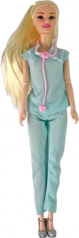 Ținuta medicală elegantă și părul lung, blond oferă păpușii un aspect autentic, care va încânta copiii.