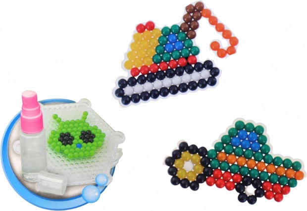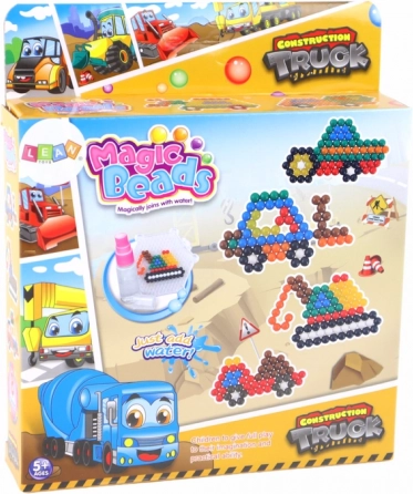 Descoperă magia mărgelelor acuarelabile – așază modelul pe plăcuță, pulverizează cu apă și lasă să se usuce. Setul oferă 8 culori (galben, portocaliu, negru, alb, maro, verde, albastru, roșu) și tot ce este necesar pentru a crea pandantive, decorațiuni și motive cu vehicule de construcții. Cadoul ideal pentru micii creatori, care susține creativitatea și atenția la detalii.