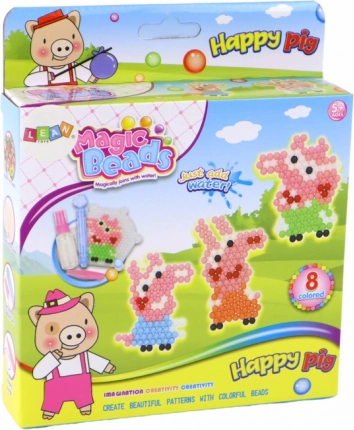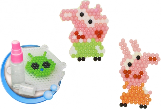 Set creativ de mărgele cu apă pentru micii artiști, oferă 8 culori vii, două plăcuțe-șablon (pătrat și hexagon), un pulverizator și accesorii pentru creații ușoare. Doar stropiți cu apă și mărgelele se lipesc fără călcare. O alegere grozavă pentru dezvoltarea motricității fine, a imaginației și pentru realizarea de pandantive și motive drăgălașe cu purceluși.