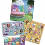 Această cutie cadou include tot ce au nevoie copiii pentru a crea și a se juca. 3 foi de autocolante oferă o gamă largă de motive din popularul serial Gabby's Dollhouse, pe care copiii le pot lipi pe scenariile din carton incluse sau pe propriile creații.