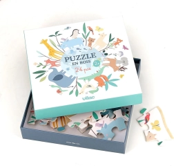 Puzzle-ul rotund Lumea animalelor, prin motivele ilustrate cu animale, dezvoltă coordonarea motorie fină și abilitățile de observație la copii.