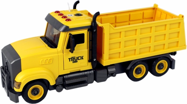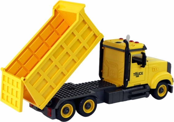 Descoperă distractiva basculantă galbenă pentru micii fani ai utilajelor de construcții. Oferă sunete realiste (4 butoane), mecanism cu volant pentru deplasare ușoară și un șurubelniță cu 2 biți pentru demontare și asamblare. Elementele mobile și calitatea execuției susțin motricitatea fină, imaginația și jocul creativ.
