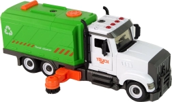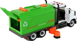 Această mașină de măturat, realizată cu atenție la detalii, în culori verde și alb, aduce copiilor un joc realist de curățare a străzilor. Ușile față și spate care se deschid, roțile mari și stabile și periile laterale portocalii sporesc autenticitatea. Datorită mecanismului cu fricțiune, este suficient să tragi vehiculul și să-l eliberezi – pornește singur.